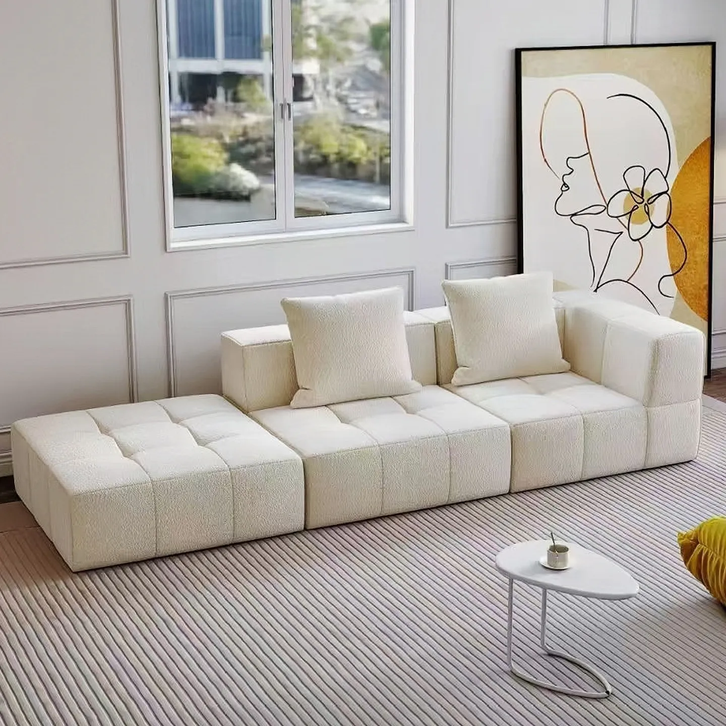 Диван с высокой степенью свободы, состоящий из свободно перемещаемых подушек и раздельных модулей сидений, сочетающий в себе высокоэластичную пену и мягкую обивку от мастеров-ремесленников. Простой и универсальный, он имеет несколько зон поддержки, повторяющих изгибы тела, удобный и прочный, с отдельными пространствами, которые не мешают друг другу, но при этом связаны между собой!